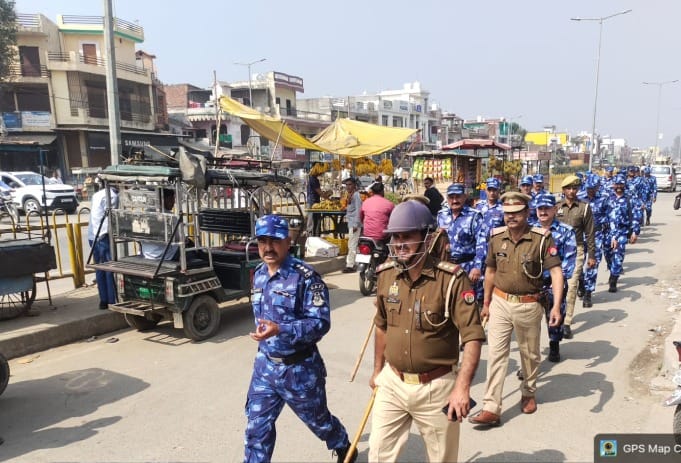 होली व रमजान से पूर्व पुलिस अलर्ट: बेहट व नकुड़ में निरीक्षण, देवबंद में फ्लैग मार्च