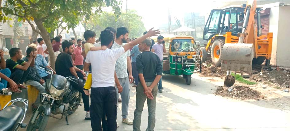 मंदिर पर बुलडोजर चलाने का लोगों ने किया विरोध, अधिकारियों का घेराव